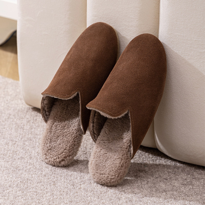 轻奢冬季羊毛拖鞋家居家用卧室内地板保暖加绒真皮棉拖鞋防滑男女