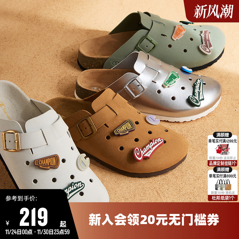 Champion冠军秋季拖鞋洞洞勃肯鞋男女舒适包头凉鞋一脚蹬休闲鞋