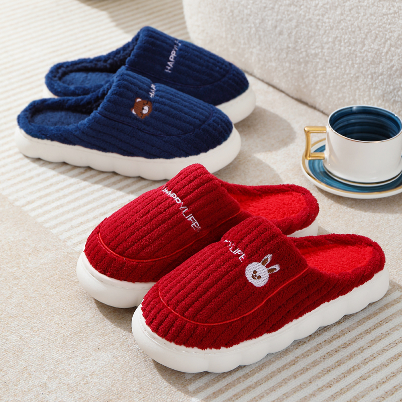 冬季新款加绒保暖棉拖鞋女情侣居家室内舒适毛绒月子棉拖冬季家用