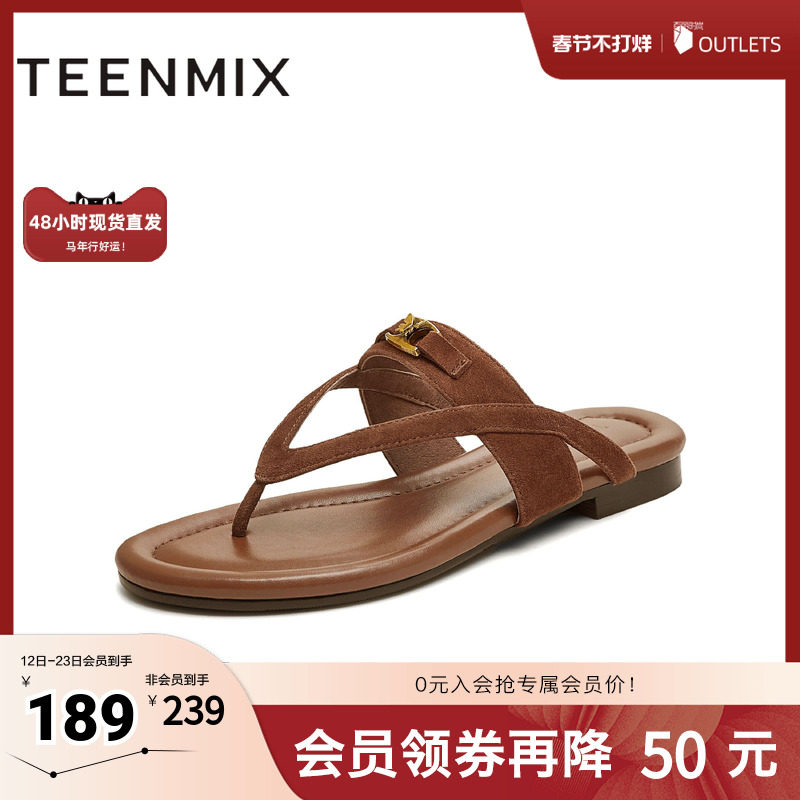 羊皮版~度假风曼谷拖亚麻褶皱平底凉拖鞋女夏外穿沙滩一字拖鞋子
