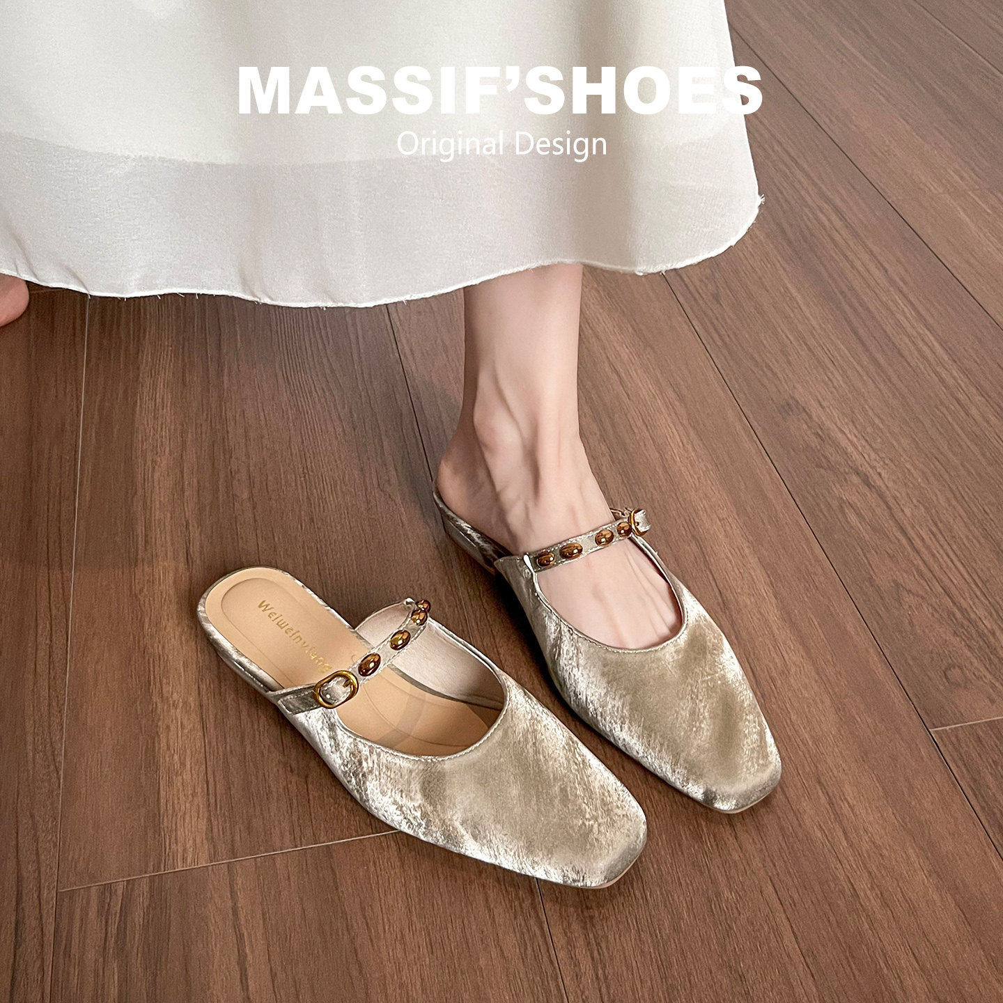 方头穆勒鞋女外穿2026新款夏包头凉拖鞋粗跟玛丽珍配裙子半拖单鞋