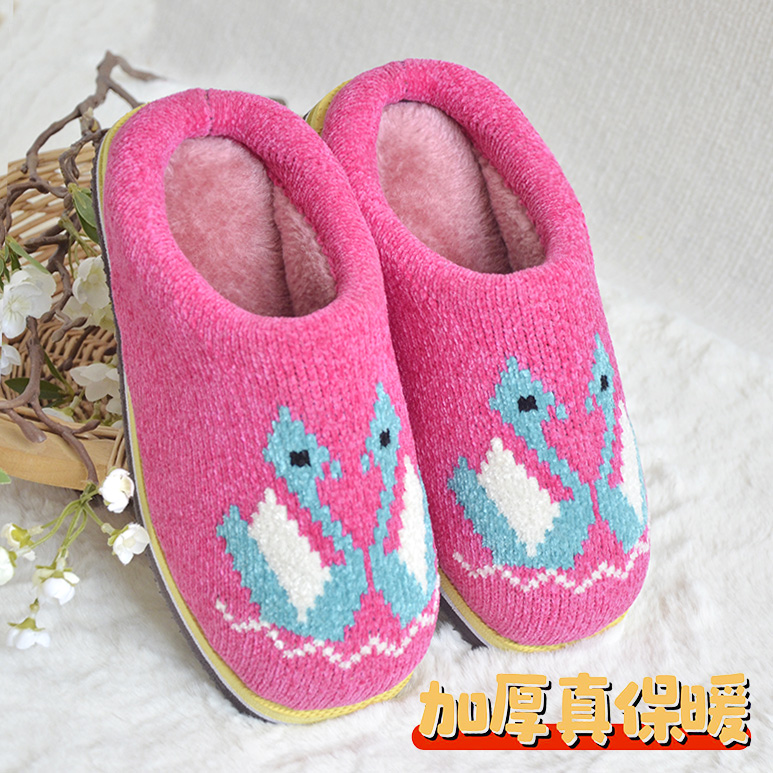 秋冬季室内防滑耐磨地板鞋拖鞋女家居保暖轻便情侣毛绒水果棉拖鞋