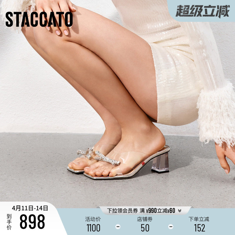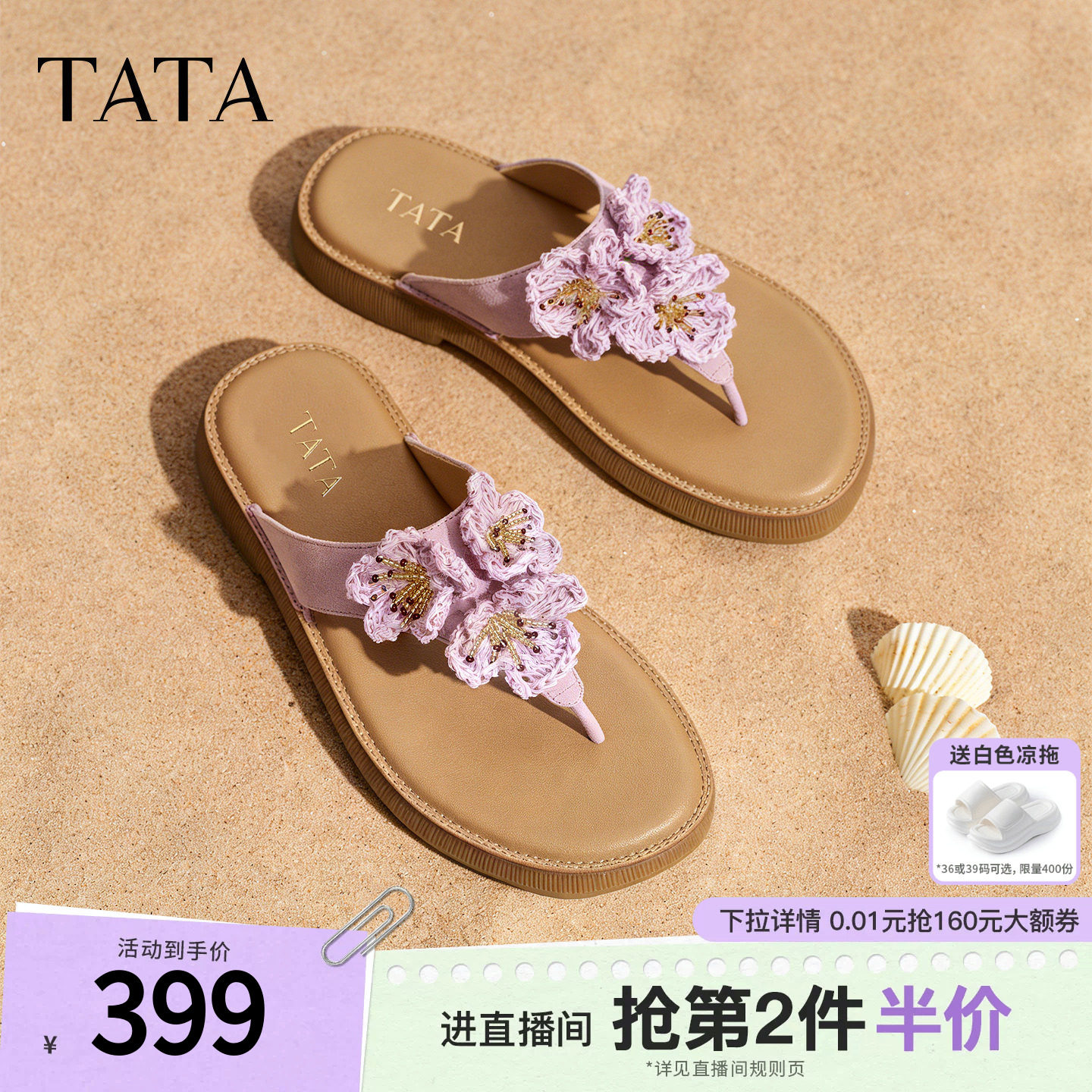 TATA他她法式气质高跟拖鞋女鞋通勤一字带休闲凉鞋夏新款XEK03BT5