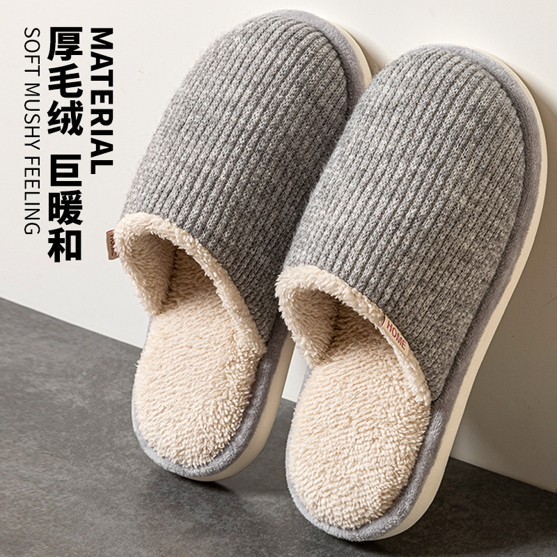 新款严选情侣棉拖鞋冬季家用居家棉拖女室内防滑家居加绒保暖棉鞋