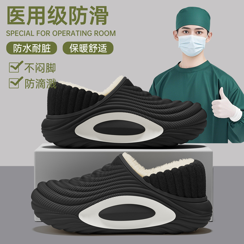 防水棉拖鞋女士秋冬季2025新款包跟室内家居防滑保暖厚底月子棉鞋