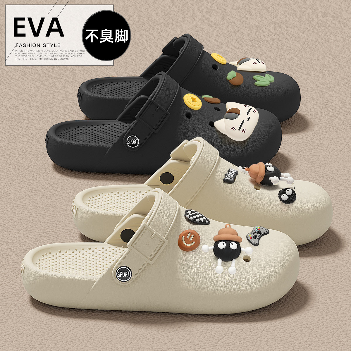 包跟防水棉拖鞋女士新款冬季外穿加绒加厚可爱大眼睛防滑舒适棉鞋
