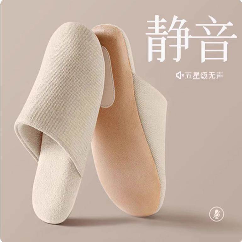 日式静音布底棉拖鞋麻机洗男女软布底室内居家用木地板无声