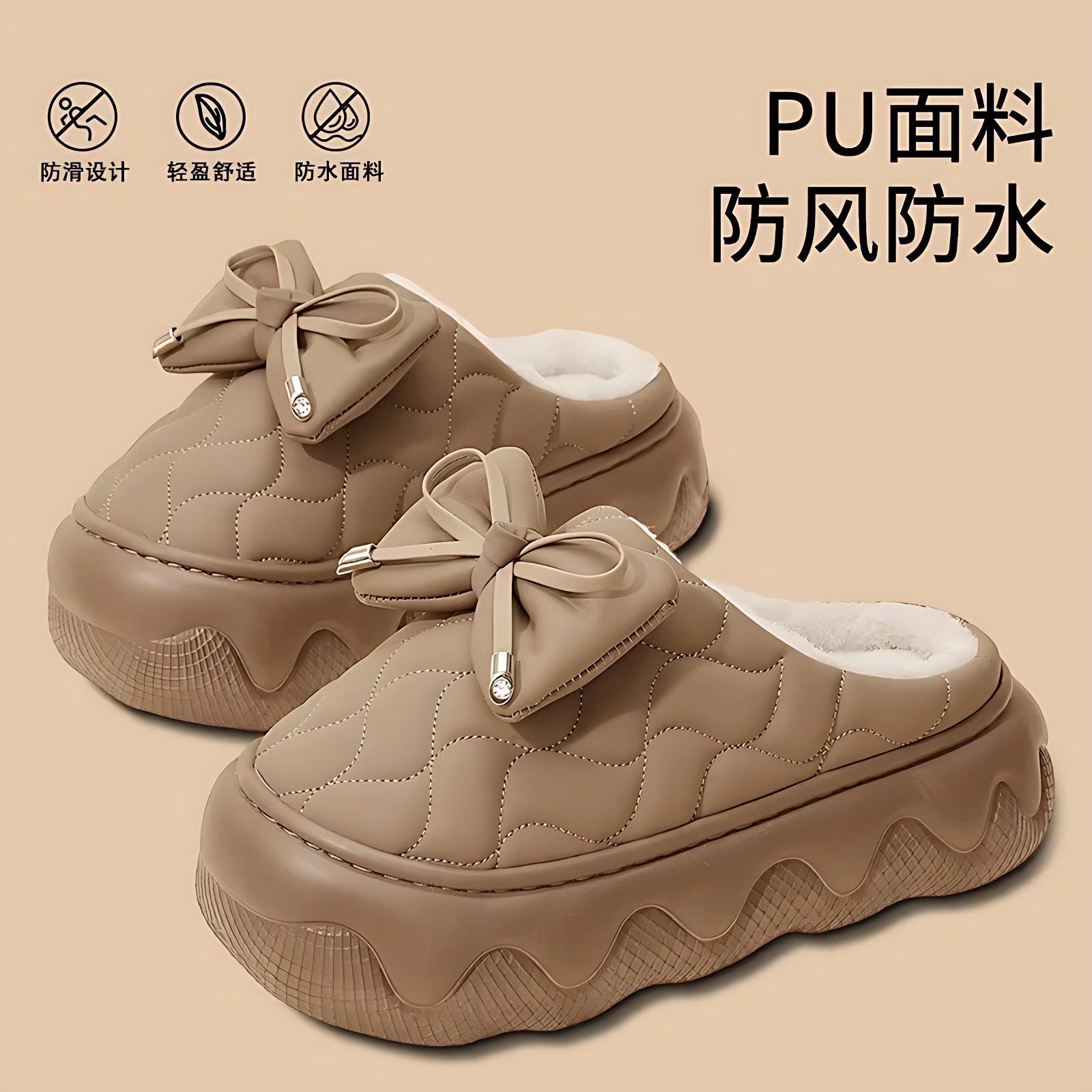 韩版增高棉拖鞋女款冬季2025新款厚底保暖毛毛绒防滑棉鞋女士外穿