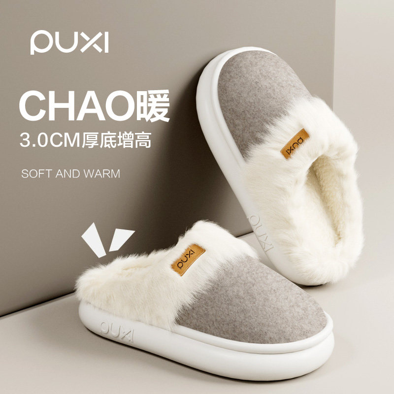 朴西司暖包跟棉拖鞋女加绒保暖防滑情侣保暖两穿室内家居棉拖鞋男