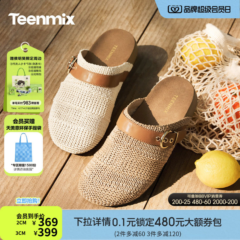 天美意复古编织勃肯包头半拖鞋女厚底凉拖鞋2026夏季新款BM931BH6
