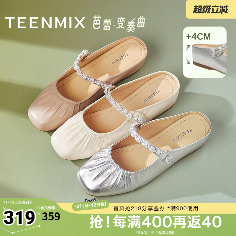 天美意芭蕾变奏曲内增高软底包头半拖鞋女外穿凉拖穆勒鞋夏季新款