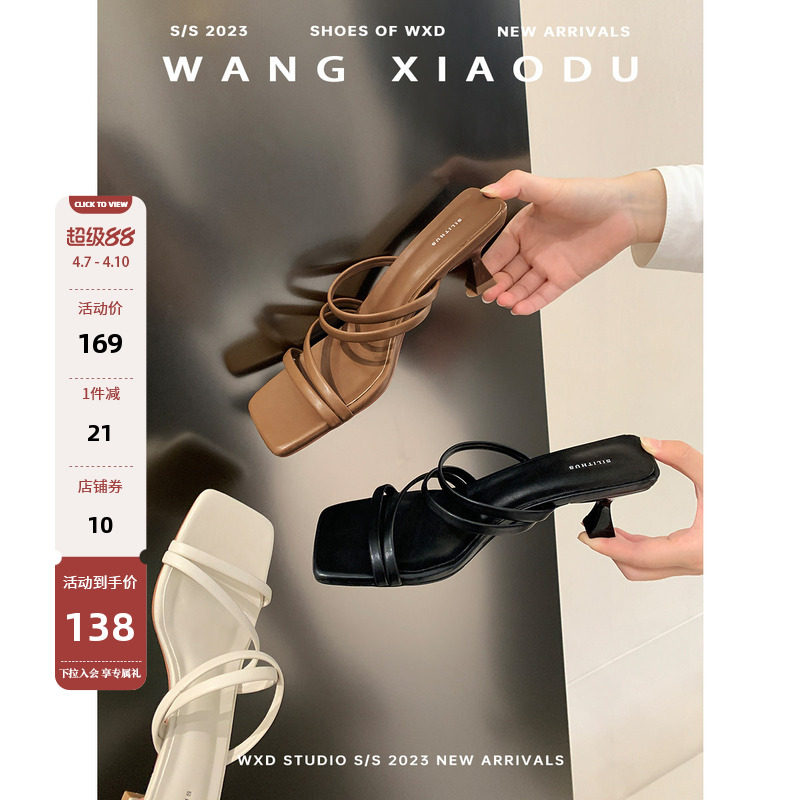 H55女鞋辛德瑞拉2026春季新款苹果头复古粗跟包头拖玛丽珍鞋拖鞋