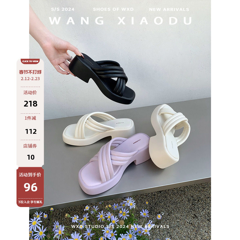 【王小毒】日光岛屿○5厚底拖鞋女夏外穿沙滩交叉带增高一字凉拖