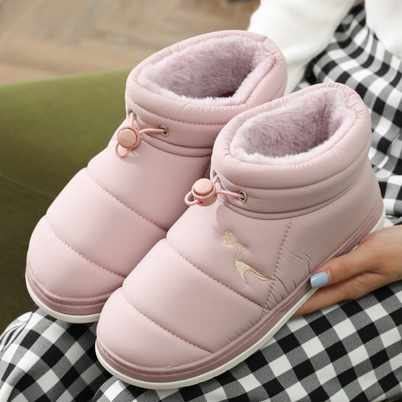 棉拖鞋女秋冬季外穿防水防滑厚底毛绒保暖月子鞋室内家居包跟棉鞋