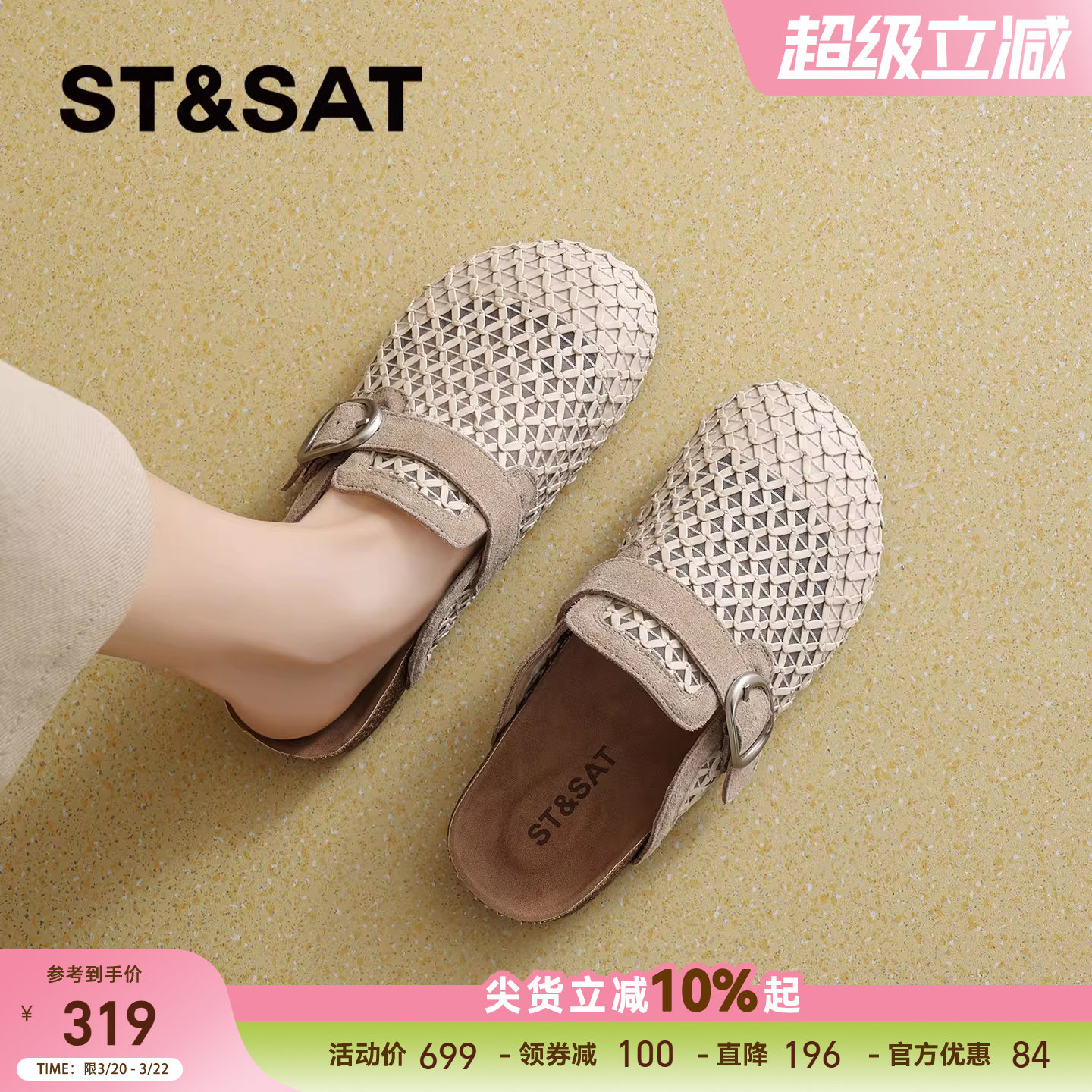 星期六编织包头拖鞋女2026春季新款镂空勃肯鞋休闲百搭外穿拖鞋女