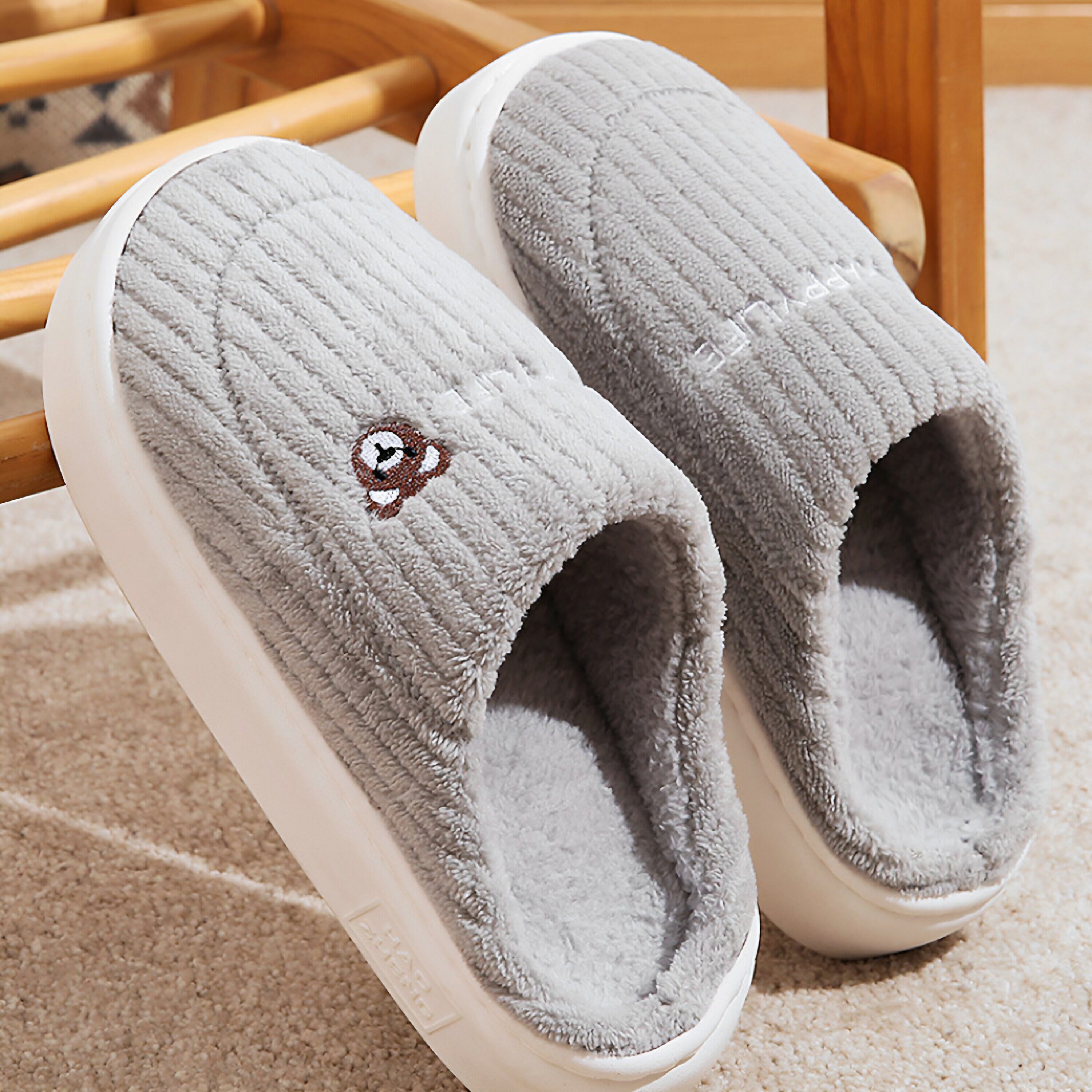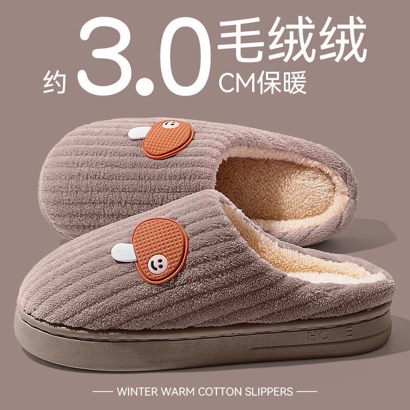 蒲西冬季无臭脚暖软底棉质男家用室内简单软底双双棉质女拖鞋