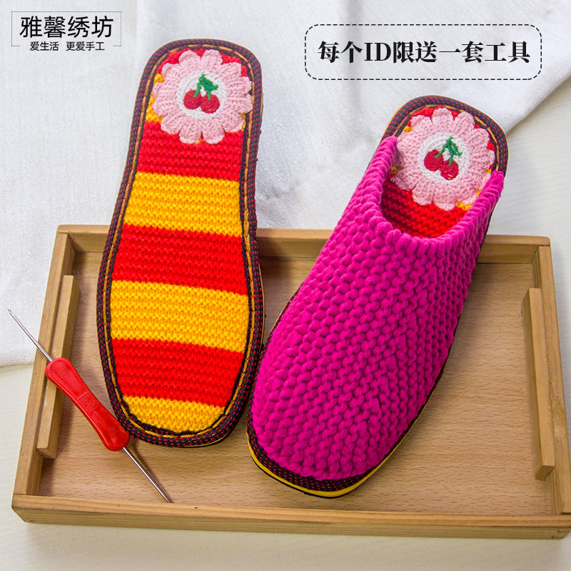 极速雅馨绣坊手工编织diy勾拖鞋布条线春秋包头拖鞋X鞋底花毛线材