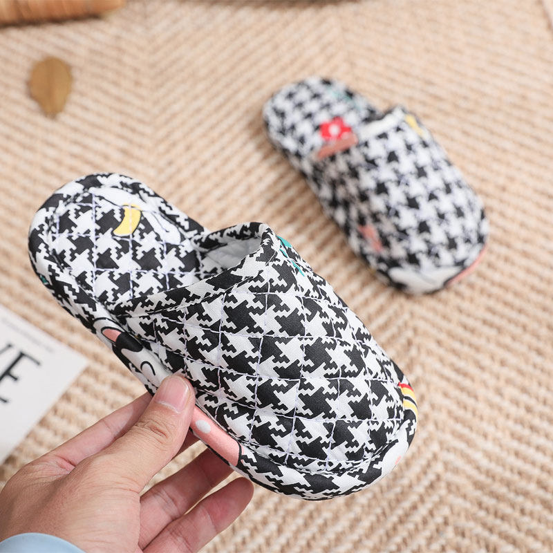 极速秋冬四季室内家用儿童u卡通防滑颗粒布艺布底拖鞋静音木地板
