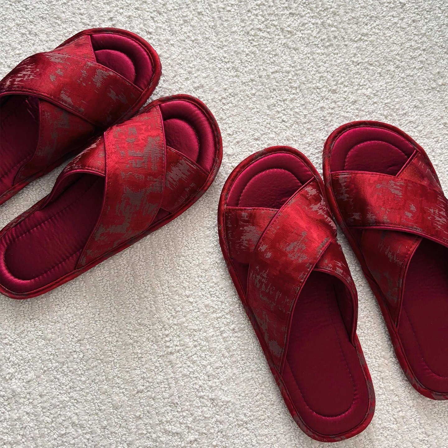 利达妮亚麻拖鞋结婚喜庆红色男女情侣春秋款轻奢新婚红拖鞋