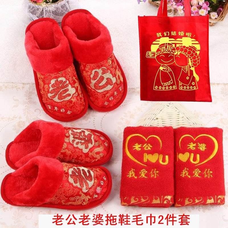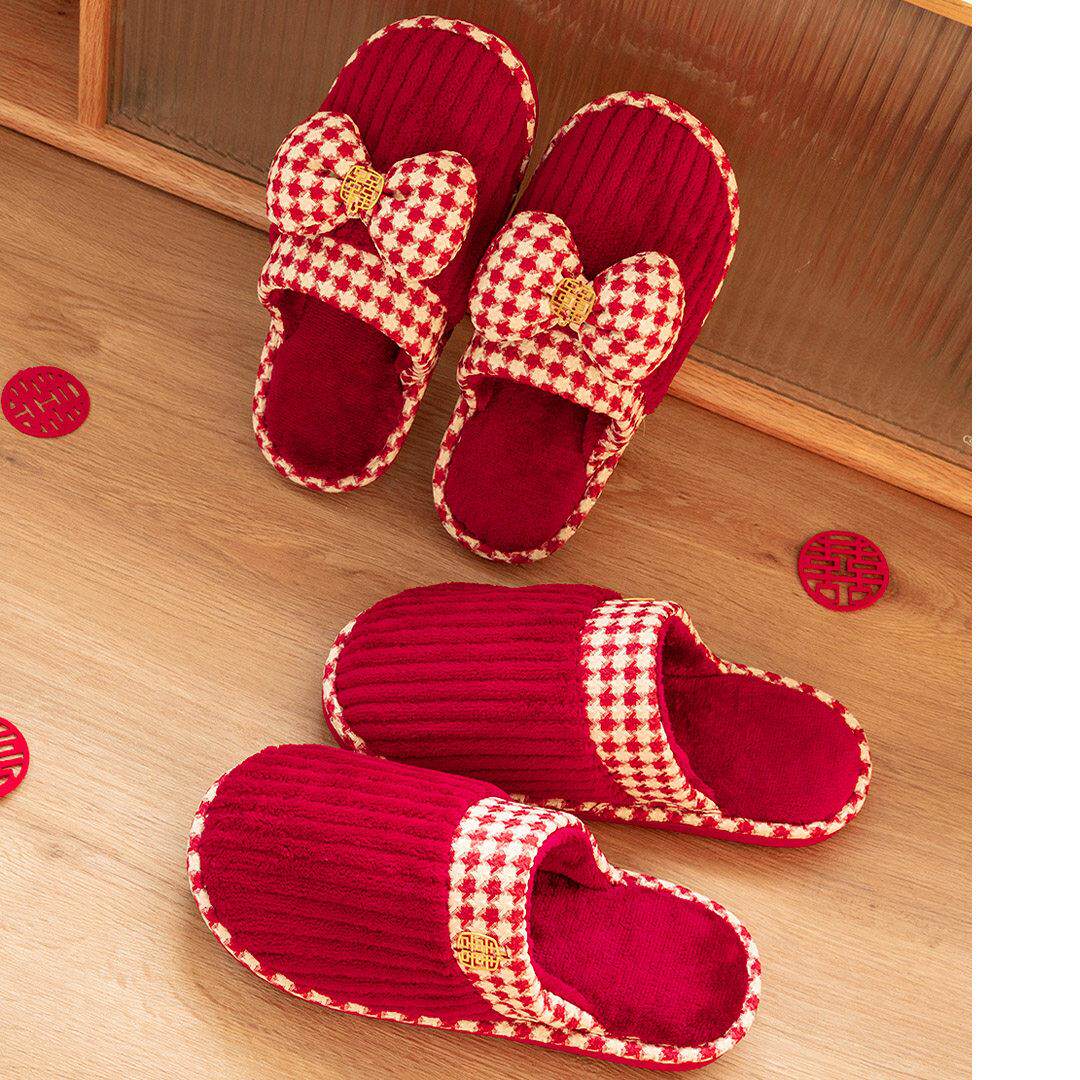 速发结婚棉拖新婚喜庆大红色秋拖鞋一对婚庆情侣陪嫁新娘