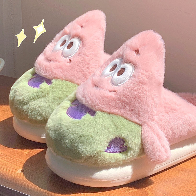 亲子款~可d爱卡通派大星毛绒棉拖鞋女学生秋冬居家用保暖儿童棉鞋