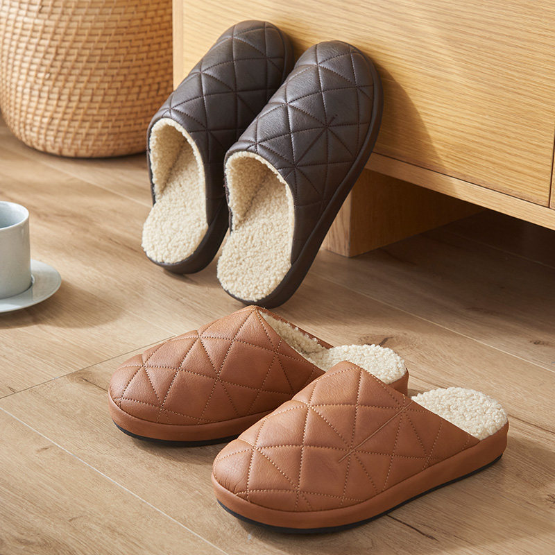 PU防水棉拖鞋女士冬季2025新款室内家居软底防滑保暖静音棉拖男士