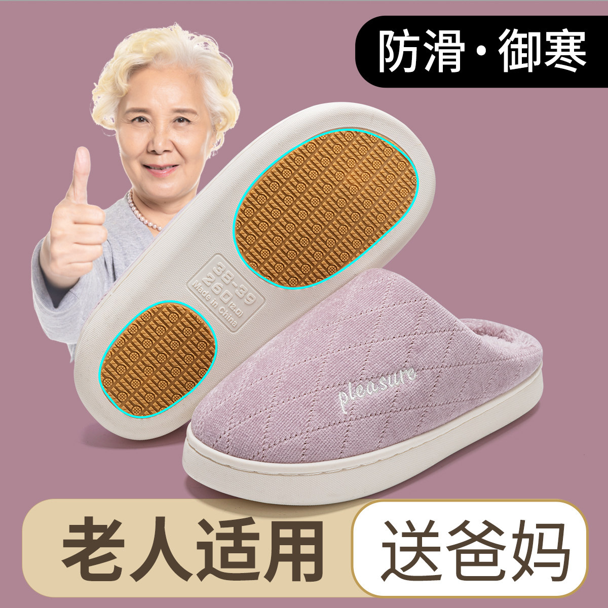 老人防滑棉拖鞋女士秋冬季室内家居保暖厚底中老年情侣毛毛拖鞋男