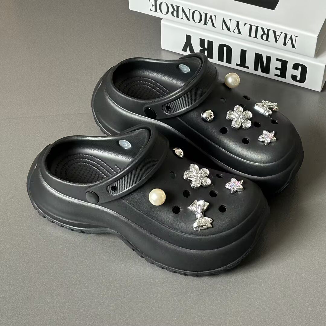 7cm洞洞鞋女夏季新款外穿透气厚底踩屎感沙滩凉拖鞋包头拖鞋
