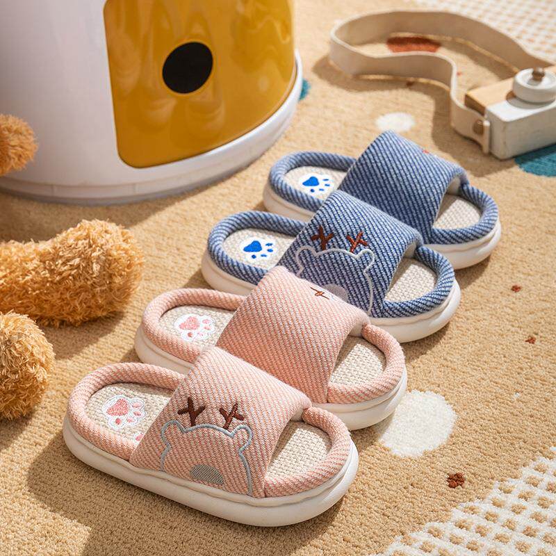 儿童拖鞋春秋男童室内居家用防滑卡通棉布女孩子宝宝亚麻拖鞋四季