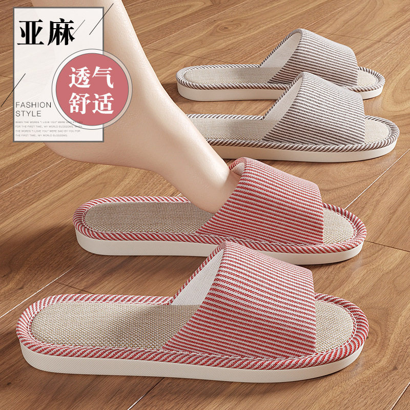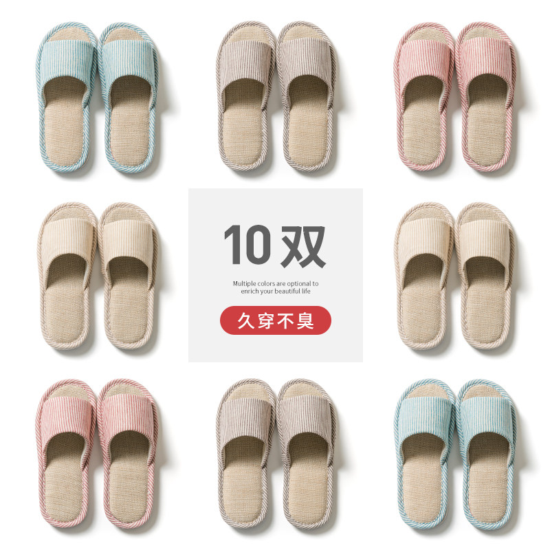 10双装亚麻拖鞋女家居室内夏季待客家用防滑居家不臭脚四季拖鞋男
