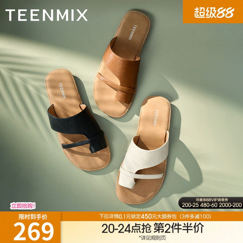 天美意一字拖度假平底拖鞋女外穿凉拖休闲凉鞋夏季新款KT073BT5