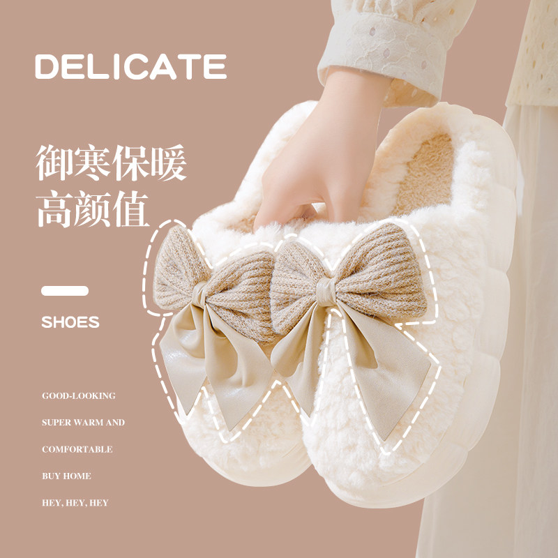 极速蝴蝶结棉拖鞋女可爱秋冬季新款居家保暖厚底R女士情侣家用毛