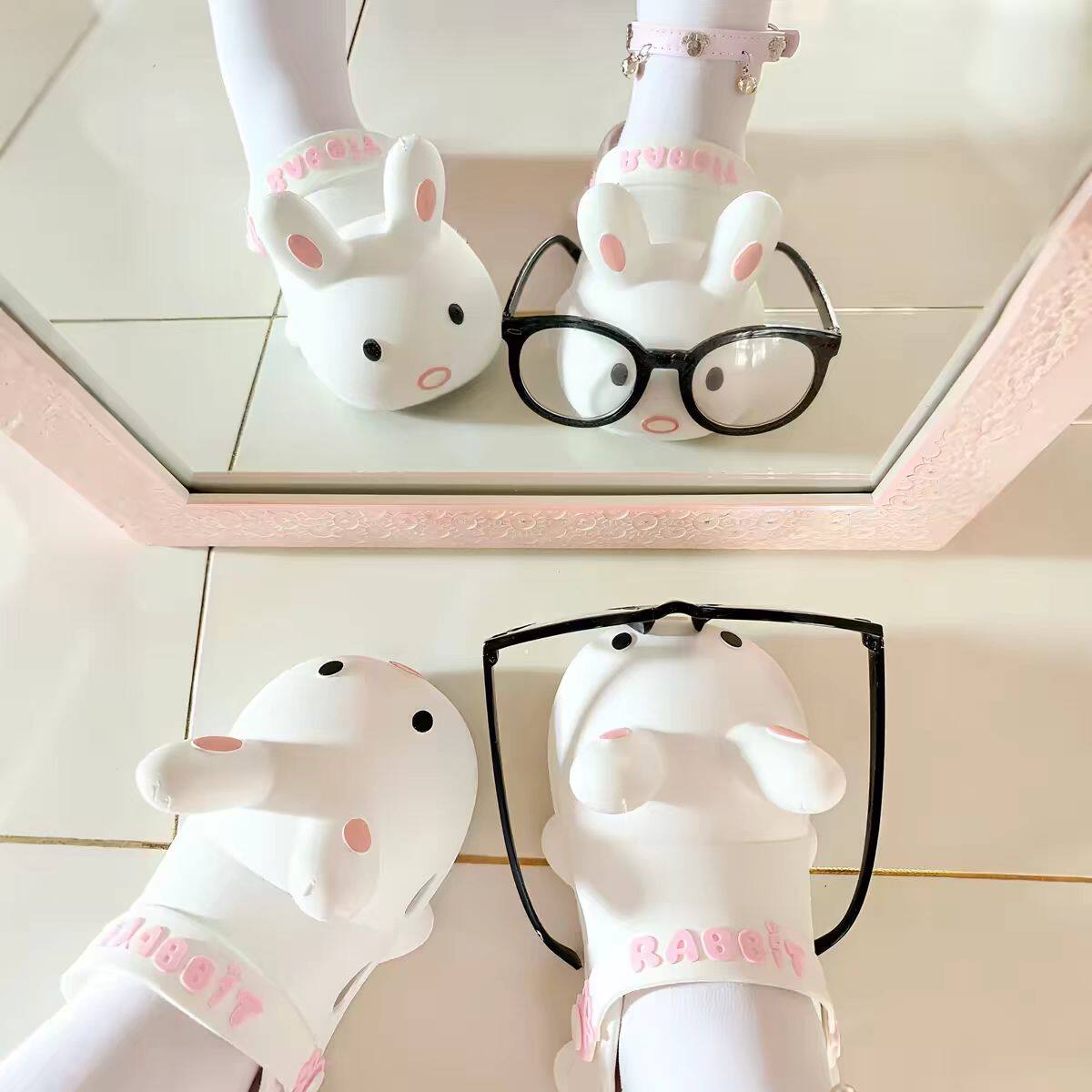 泡芙兔兔包头拖女夏季学生少女外穿拖鞋防滑防臭洞洞鞋旅游沙滩鞋