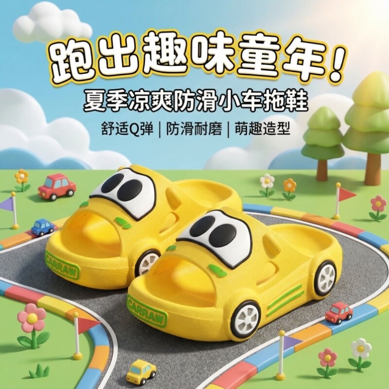 汽车儿童拖鞋男童室内居家防滑男孩软底卡通宝宝凉拖鞋2026新款夏
