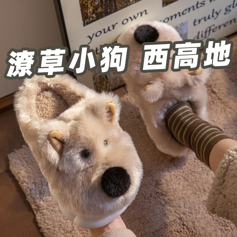 西高地拖鞋女冬天可爱狗狗家居加厚网红爆款毛毛S情侣棉拖鞋秋冬
