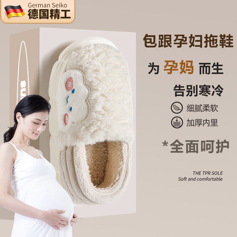 月子鞋棉拖鞋女士冬m季室内家居2024新款厚底冬款产后包跟棉鞋女