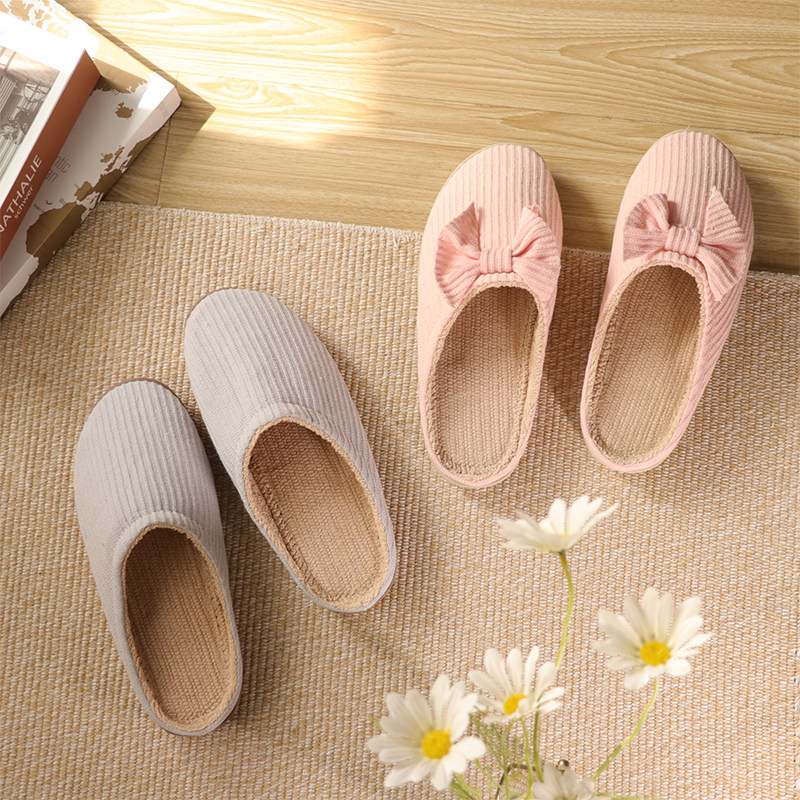 日本柔韵交叉蝴蝶结棉拖鞋女冬季室内家居家用保暖防滑厚底