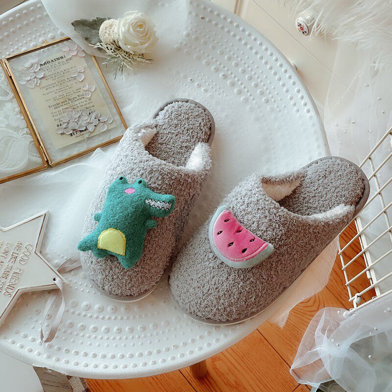 秋冬新品可爱立体草莓栗子毛绒保A暖家居棉拖鞋 防滑柔软家用鞋女