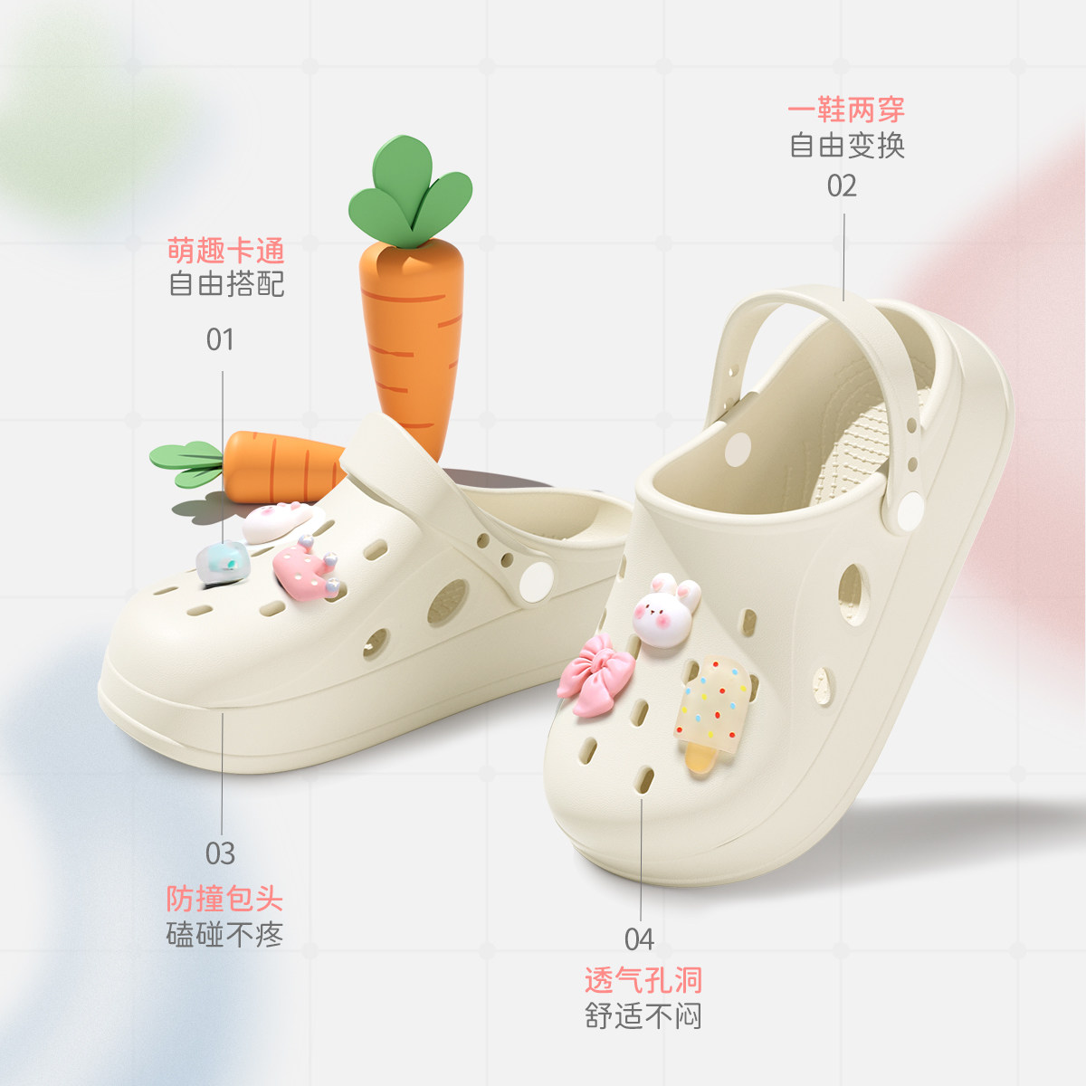 泡芙兔兔包头拖女夏季学生少女外穿拖鞋防滑防臭洞洞鞋旅游沙滩鞋
