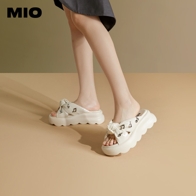 MIO米奥夏季高跟时尚拖鞋蓬软扭结厚底沙发拖通勤一字拖女