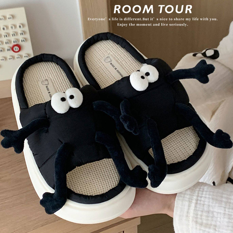 极速创意可爱煤球拖鞋女2023新款夏季外穿L休闲亚麻厚底室内居家
