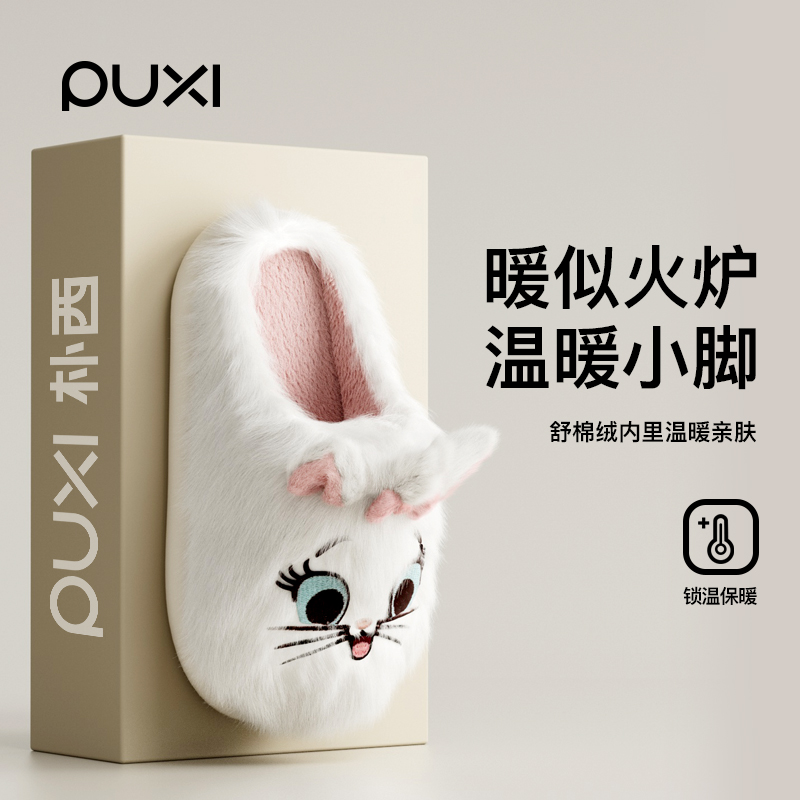 朴西2025冬季保暖棉拖鞋女不沾毛静音室内居家简约防滑情侣棉拖男