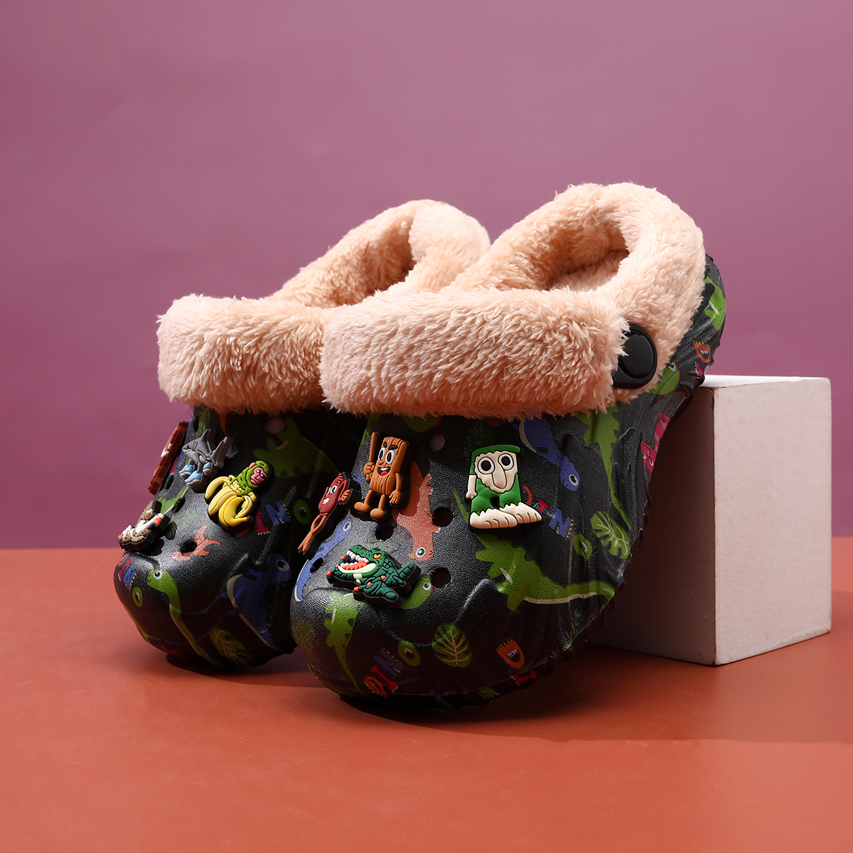儿童棉拖鞋男童毛毛拖鞋秋冬新款保暖洞洞鞋室内居家男孩防滑软底