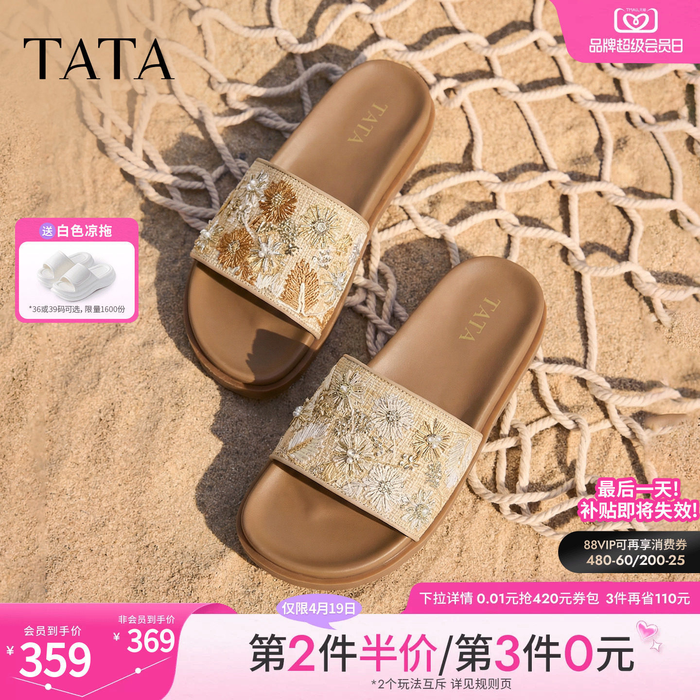 TATA他她女鞋2026夏季新款一字拖外穿百搭时尚休闲拖鞋CMV01BT6