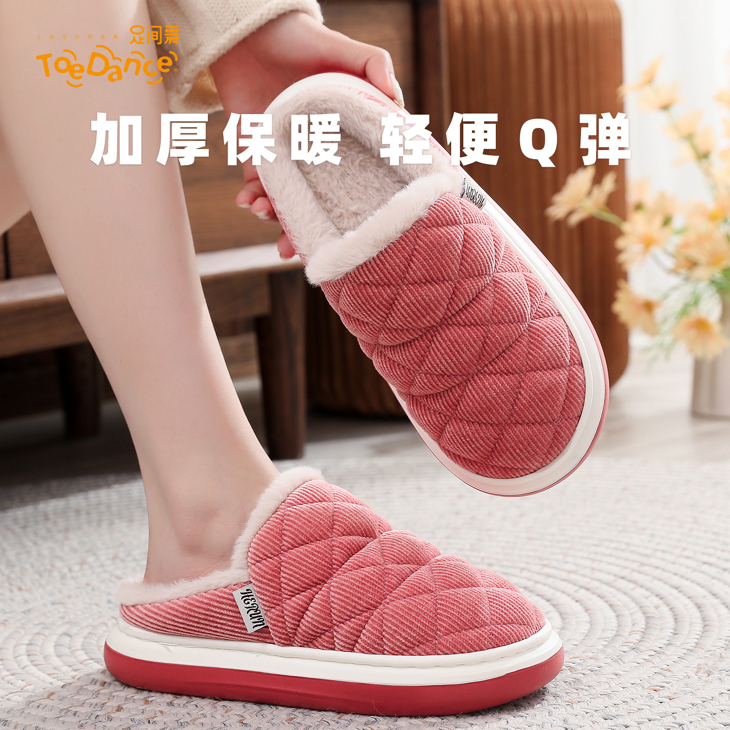 足间舞冬季棉拖鞋女2025新款室内家居厚底防滑肌理绒保暖可机洗男