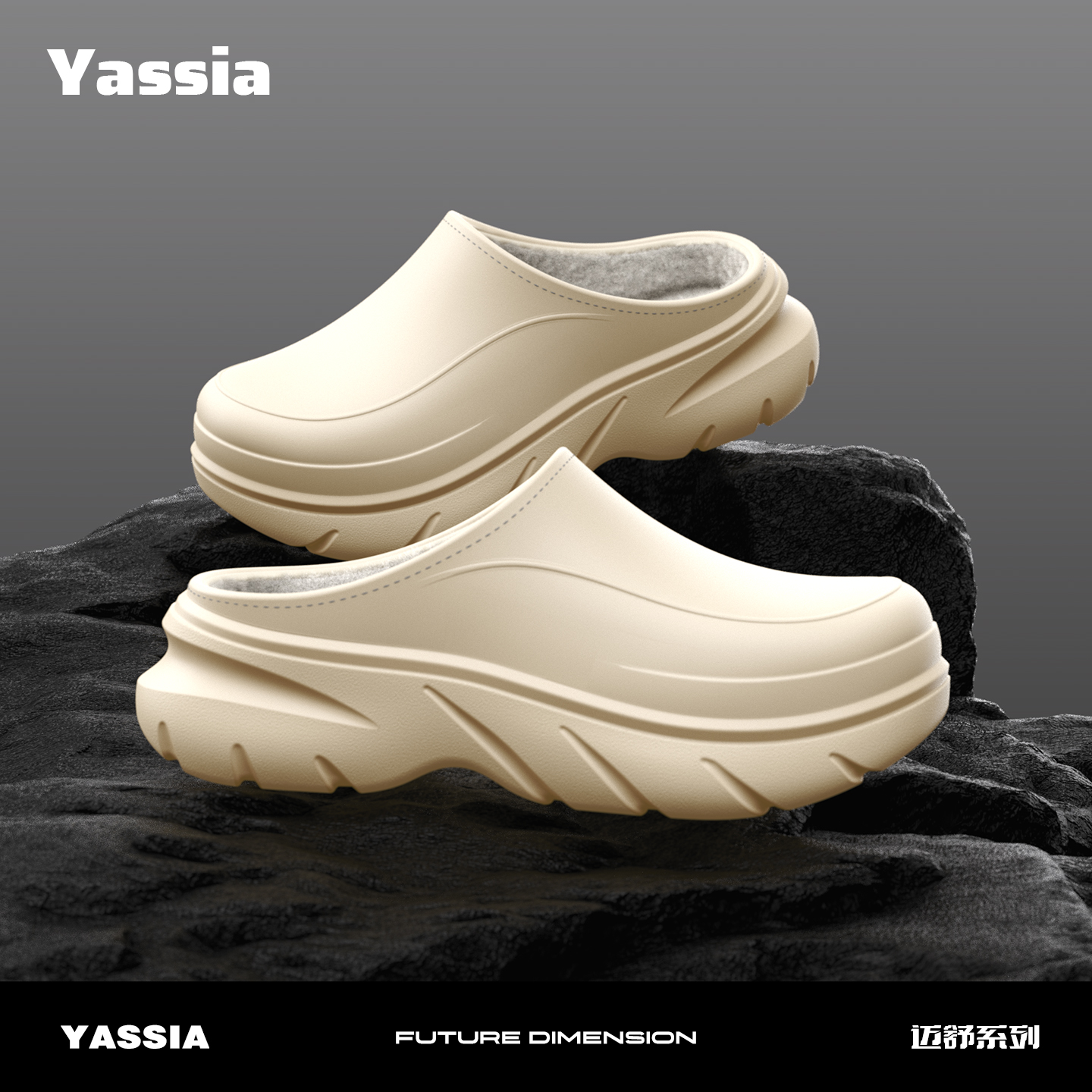 朴西可外穿雨雾棉拖鞋女冬季保暖毛绒室内防滑家居厚底包跟棉鞋男