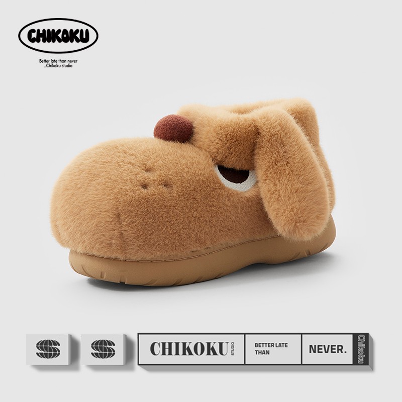 chikoku可爱小狗毛绒棉拖鞋包跟女秋冬室内防滑毛拖鞋加绒保暖鞋