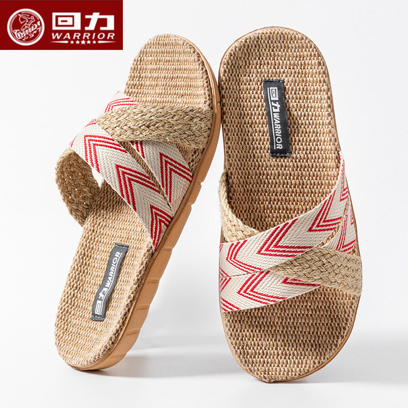 【回力】草编亚麻拖鞋爆款夏男女酒店室内办公室吸汗透气拖鞋HL56