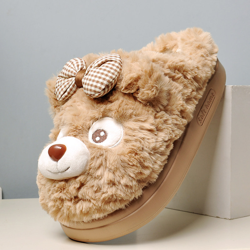 可爱卡通小熊棉拖鞋女冬季外穿情侣居家室内防滑保暖毛绒熊棉鞋女