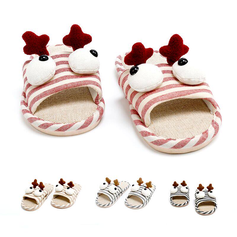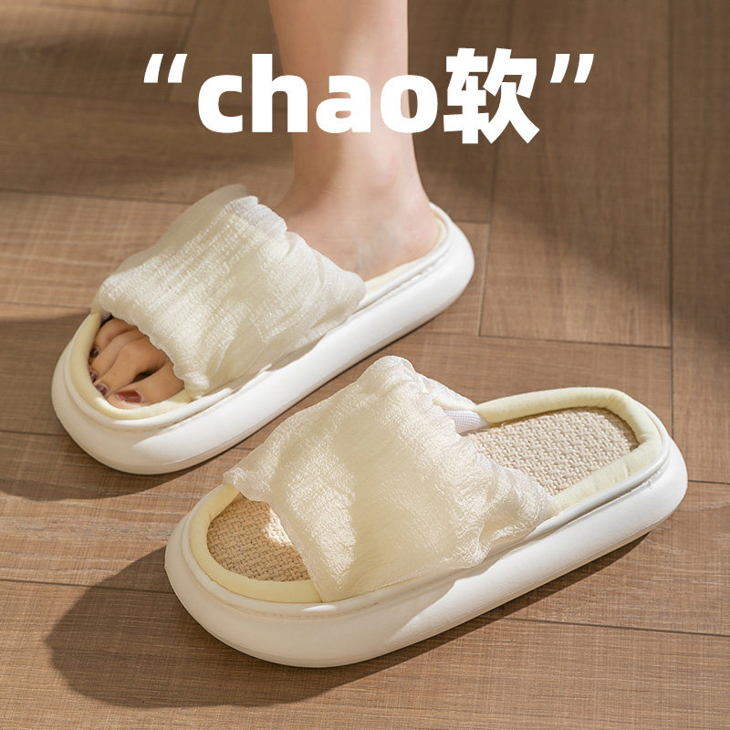 女春秋季可爱童趣少女心亚麻拖鞋学生四季居家软厚底月子棉麻凉拖